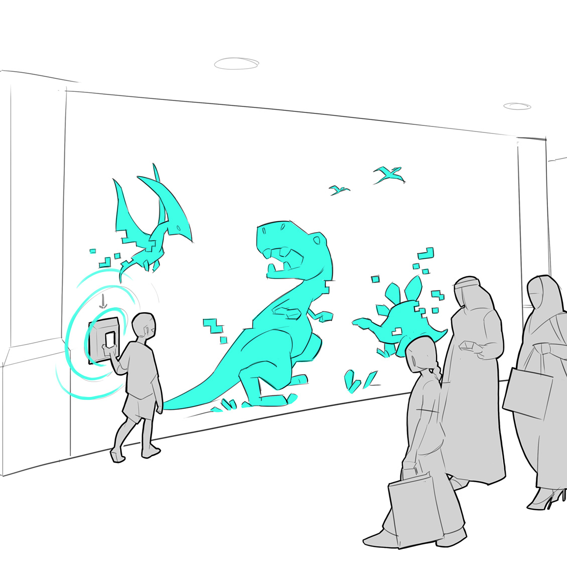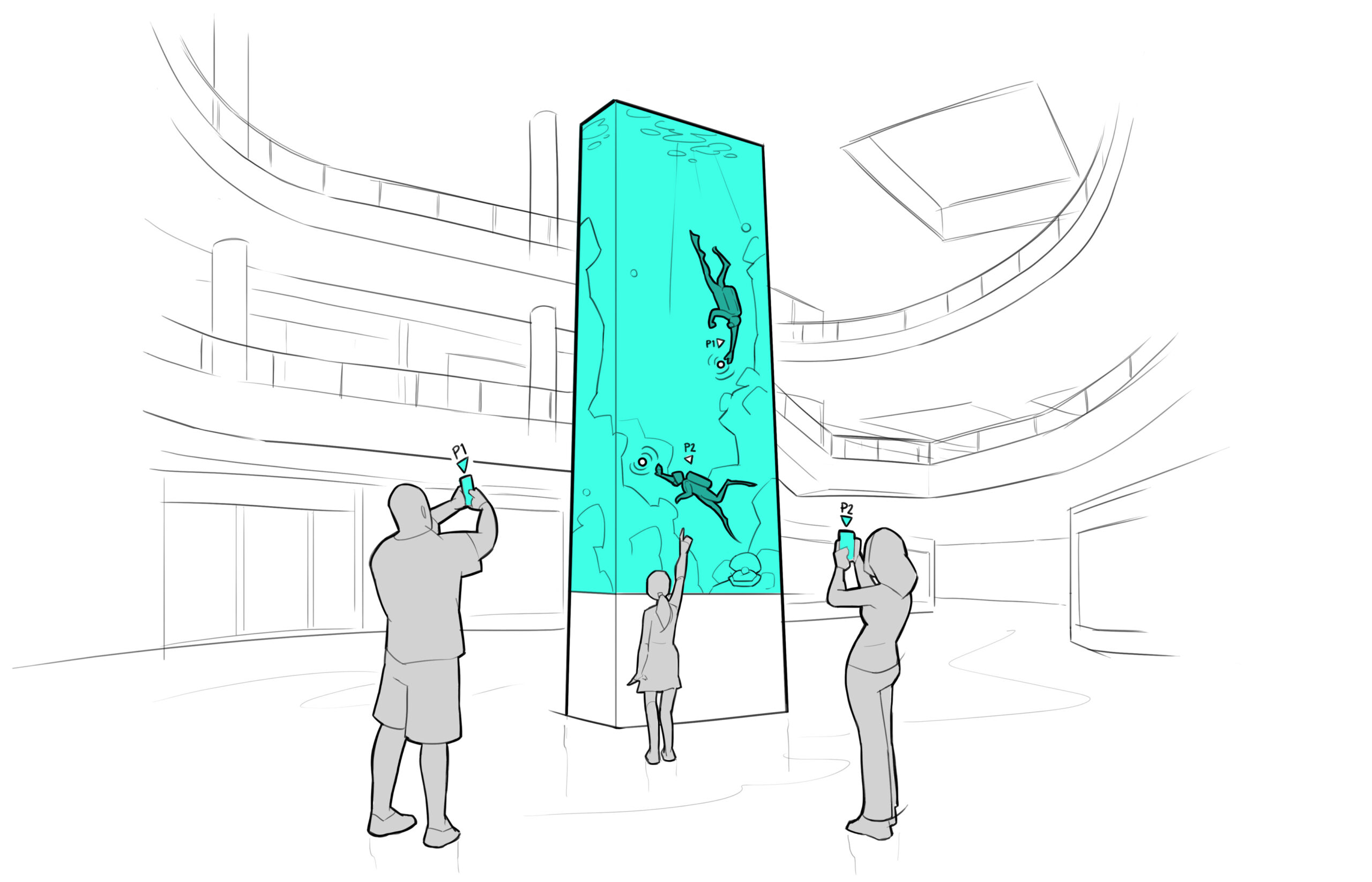 Pearl of the Persian Gulf is a large-scale interactive underwater world that transforms Westfield’s digital screens into a shared spectacle. Guests connect via their phones to steer their character through a stylised seascape inspired by Saudi’s maritime heritage and the Red Sea, feeling haptic feedback as they dodge obstacles, discover sea life and collect shimmering pearls. Each pearl contributes to digital collectibles and in-mall rewards, encouraging guests to return and “dive again” to see how the environment evolves with collective play. The experience becomes a visual icon for the mall and a natural gathering point for families and friends.